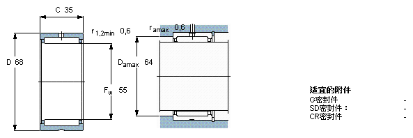 SKF NK55/35軸承圖紙及尺寸參數(shù)