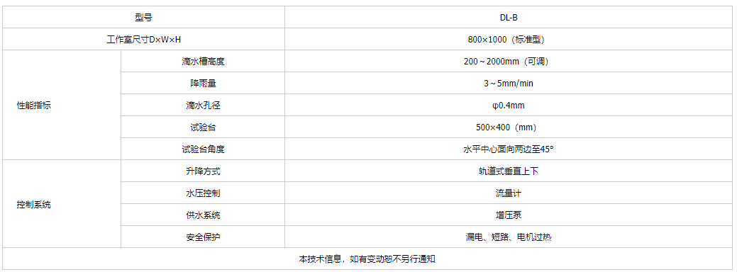 產(chǎn)品簡(jiǎn)介:滴水試驗(yàn)裝置/滴水試驗(yàn)箱(Drip box) , 滴水試驗(yàn)裝置適用于外部照明和信號(hào)裝置及汽車燈具外殼防護(hù)。箱體結(jié)構(gòu):固定立柱,柱型升降導(dǎo)軌,滴水箱,水位調(diào)節(jié)供水箱,自動(dòng)升降機(jī),流量計(jì),濾紙,可調(diào)角度工作臺(tái),電器控制箱等組成。