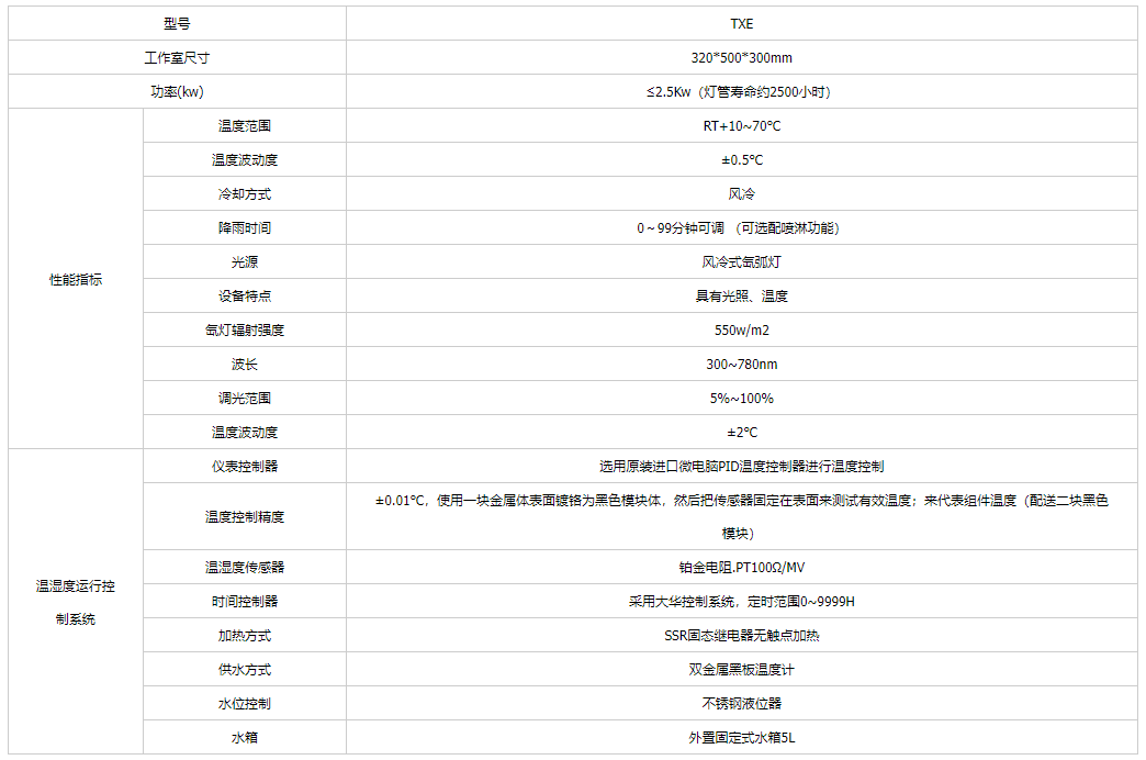 臺(tái)式氙燈老化試驗(yàn)箱選用原裝進(jìn)口微電腦PID溫度控制器進(jìn)行溫度控制 精度:0.1℃(顯示范圍); 解析度:0.1℃; 感溫傳感器:PT100鉑電阻測(cè)試器; 控制方式:熱平衡調(diào)溫方式。
