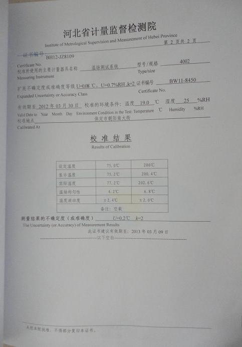 >>電熱恒溫鼓風干燥箱校準證書-河北計量院-長城汽車