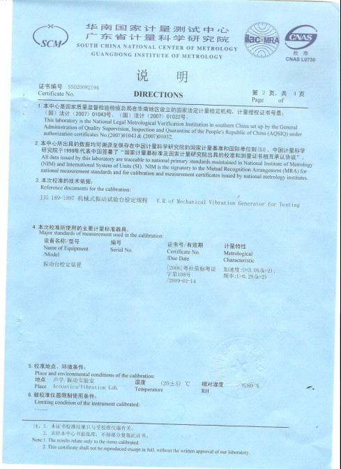 振動試驗臺校準(zhǔn)證書-廣東計量院-ABB集團