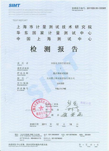 >>淋雨試驗(yàn)箱檢測報(bào)告-上海計(jì)量院-中國電科院