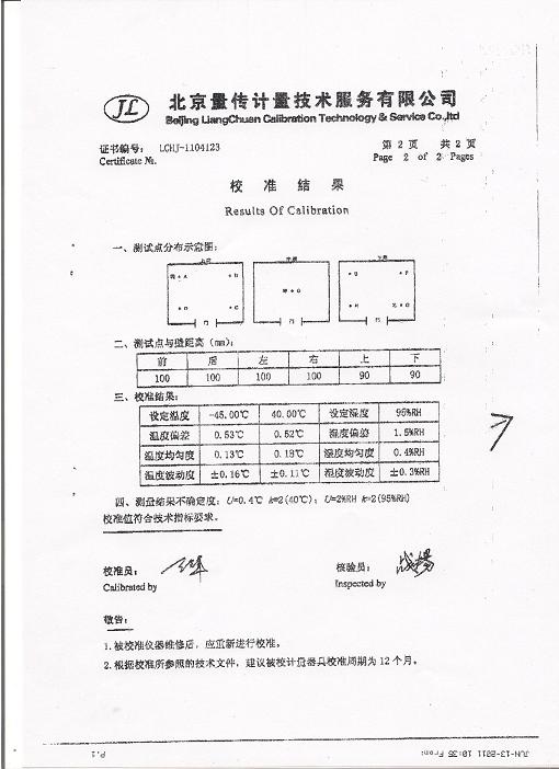 >>鹽霧腐蝕試驗箱校準證書-北京量傳計量-中安電子