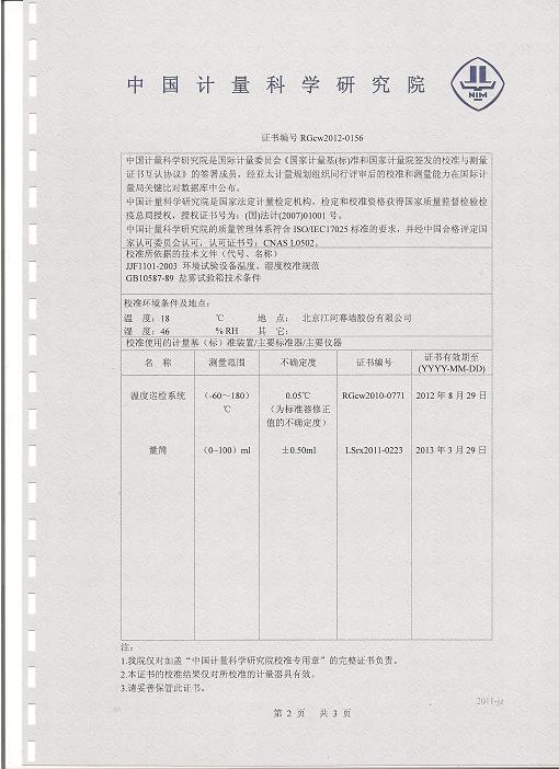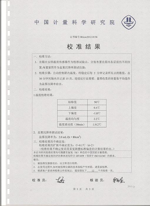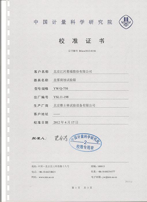 鹽霧腐蝕試驗箱校準證書-中國計量院-江河幕墻