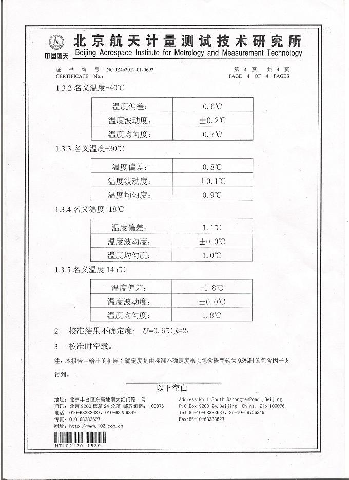 >>高低溫交變?cè)囼?yàn)箱校準(zhǔn)證書(shū)-航天計(jì)量-航天一院