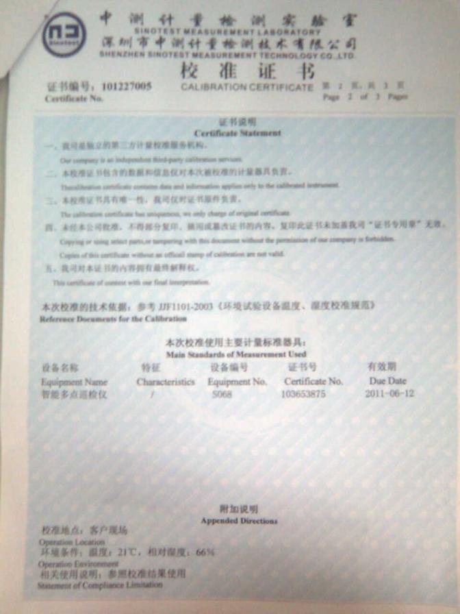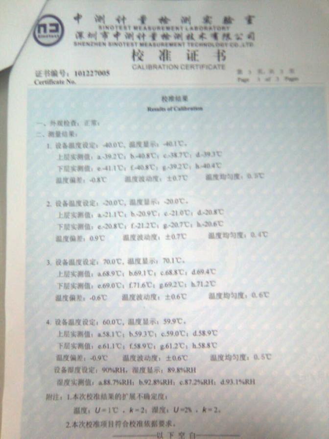 高低溫濕熱試驗(yàn)箱校準(zhǔn)證書-深圳中測計(jì)量-深圳精銳通