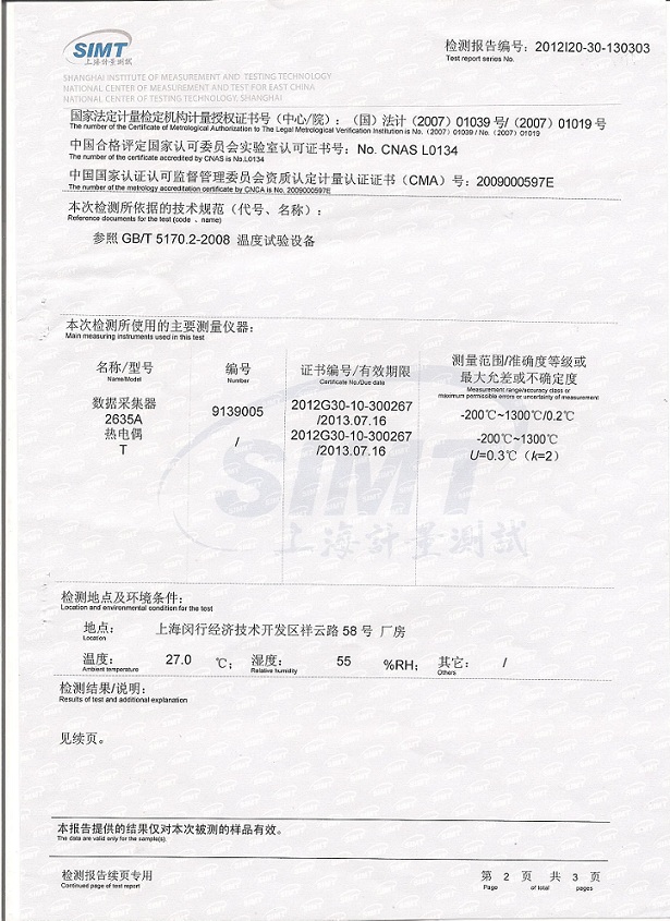 高低溫試驗箱檢測報告模板下載--上海計量院