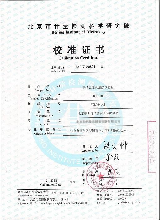 >>高低溫交變濕熱試驗(yàn)箱校準(zhǔn)證書模板下載—北京計(jì)量院